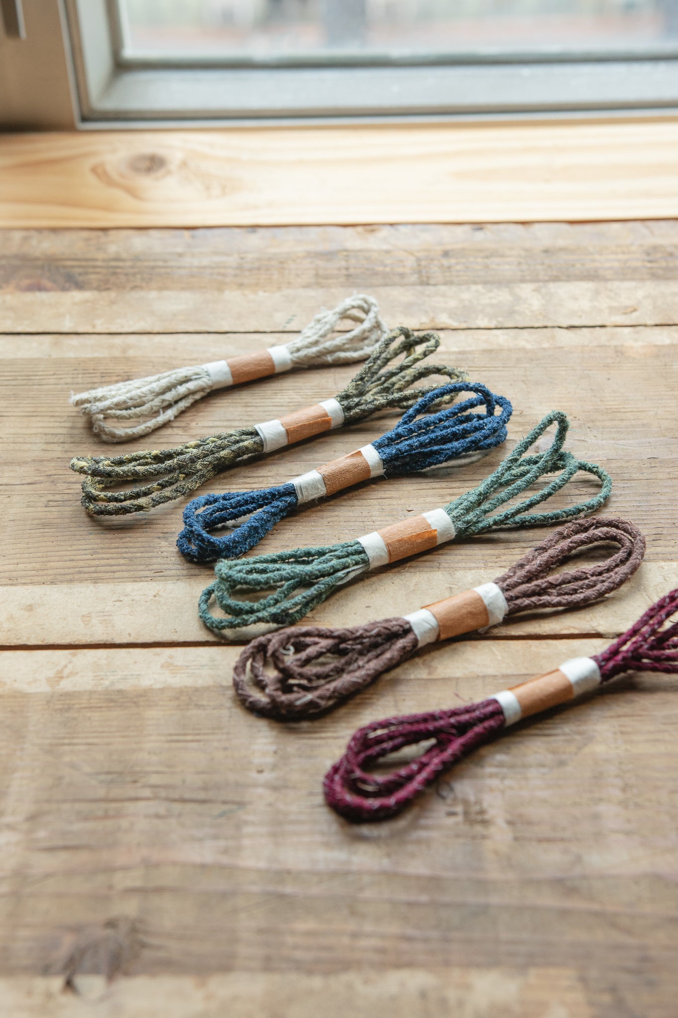 日 本 古 布 繩 多 以 木 綿 古 布 編 織 而 成 , 經 手 工 纏 繩 或 四 股 編 結 , 形 成 堅 韌 而 柔 軟 的 質 地 。 其 色 澤 與 紋 理 因 歷 年 的 染 織 與 使 用 而 呈 現 出 層 次 , 既 保 有 古 樸 氣 息 , 亦 具 實 用 功 能 。