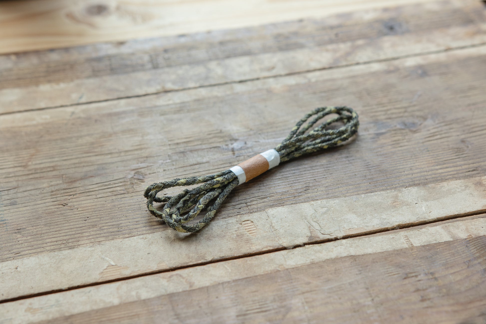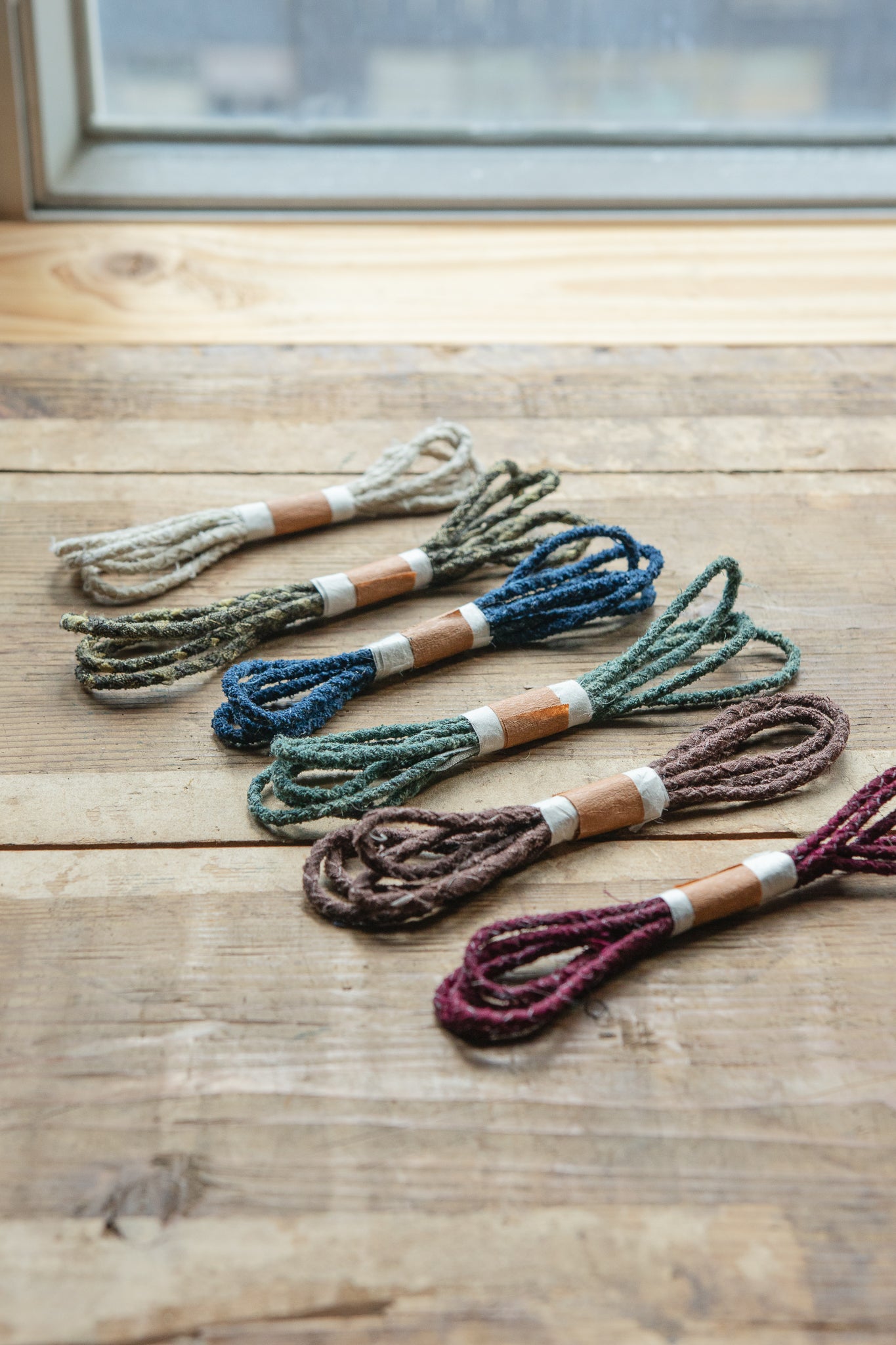 日 本 古 布 繩 以 植 物 染木 綿 古 布 編 織 而 成 , 經 手 工 纏 繩 或 四 股 編 結 , 形 成 堅 韌 而 柔 軟 的 質 地 。 其 色 澤 與 紋 理 因 歷 年 的 染 織 與 使 用 而 呈 現 出 層 次 , 既 保 有 古 樸 氣 息 , 亦 具 實 用 功 能 。
