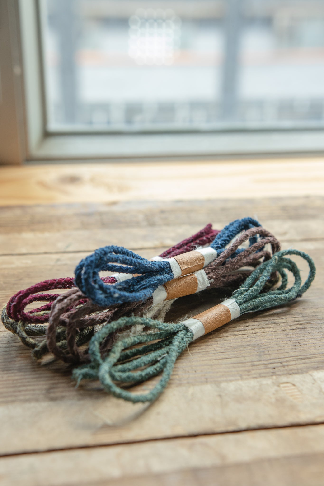 日 本 古 布 繩 多 以 植 物 染 木 綿 古 布 編 織 而 成 , 經 手 工 纏 繩 或 四 股 編 結 , 形 成 堅 韌 而 柔 軟 的 質 地 。 其 色 澤 與 紋 理 因 歷 年 的 染 織 與 使 用 而 呈 現 出 層 次 , 既 保 有 古 樸 氣 息 , 亦 具 實 用 功 能 。