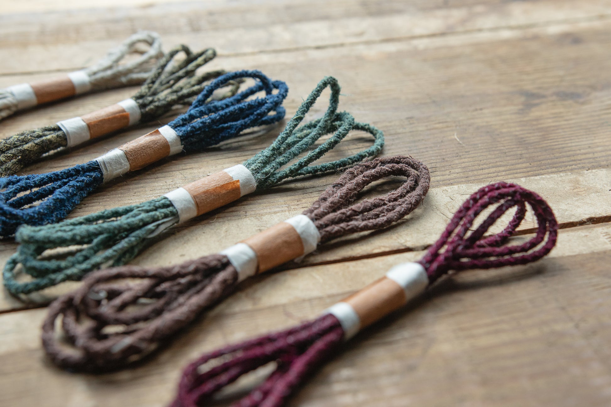 日 本 古 布 繩 以 植 物 染木 綿 古 布 編 織 而 成 , 經 手 工 纏 繩 或 四 股 編 結 , 形 成 堅 韌 而 柔 軟 的 質 地 。 其 色 澤 與 紋 理 因 歷 年 的 染 織 與 使 用 而 呈 現 出 層 次 , 既 保 有 古 樸 氣 息 , 亦 具 實 用 功 能 。