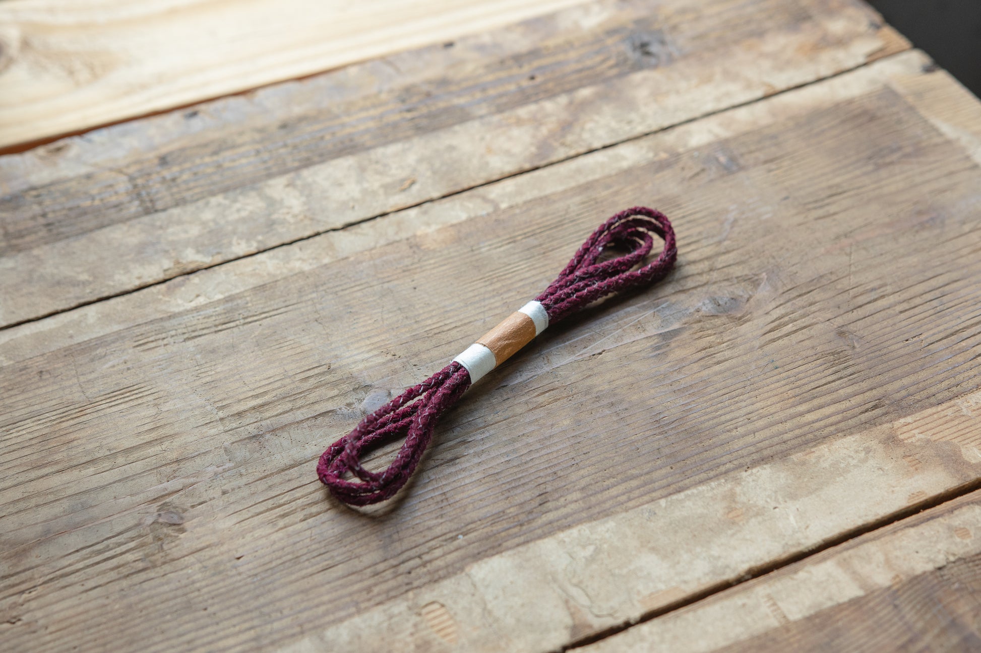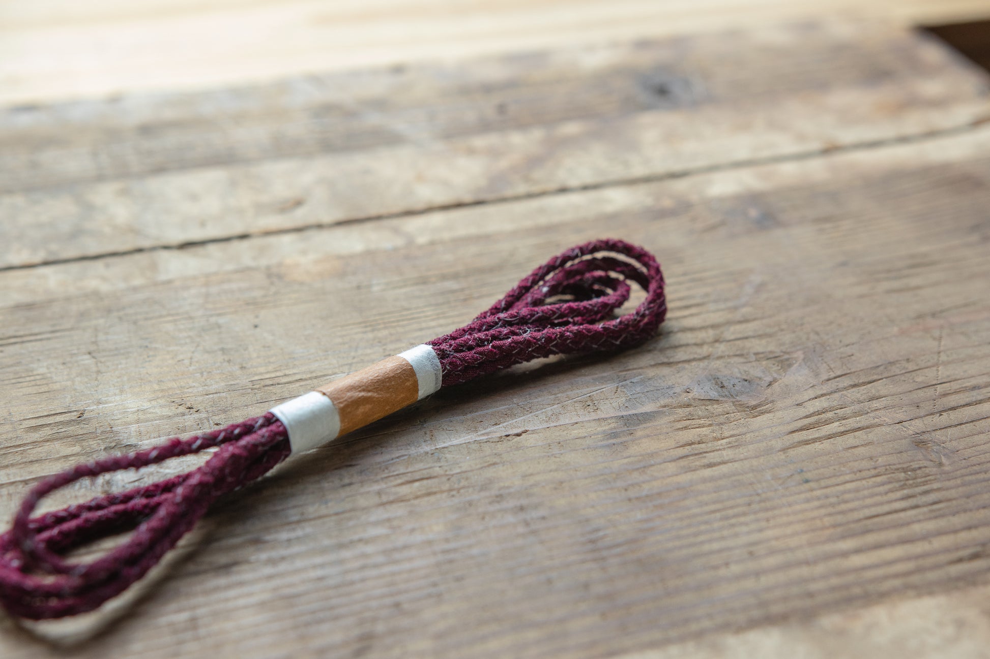 日 本 古 布 繩 以 植 物 染木 綿 古 布 編 織 而 成 , 經 手 工 纏 繩 或 四 股 編 結 , 形 成 堅 韌 而 柔 軟 的 質 地 。 其 色 澤 與 紋 理 因 歷 年 的 染 織 與 使 用 而 呈 現 出 層 次 , 既 保 有 古 樸 氣 息 , 亦 具 實 用 功 能 。