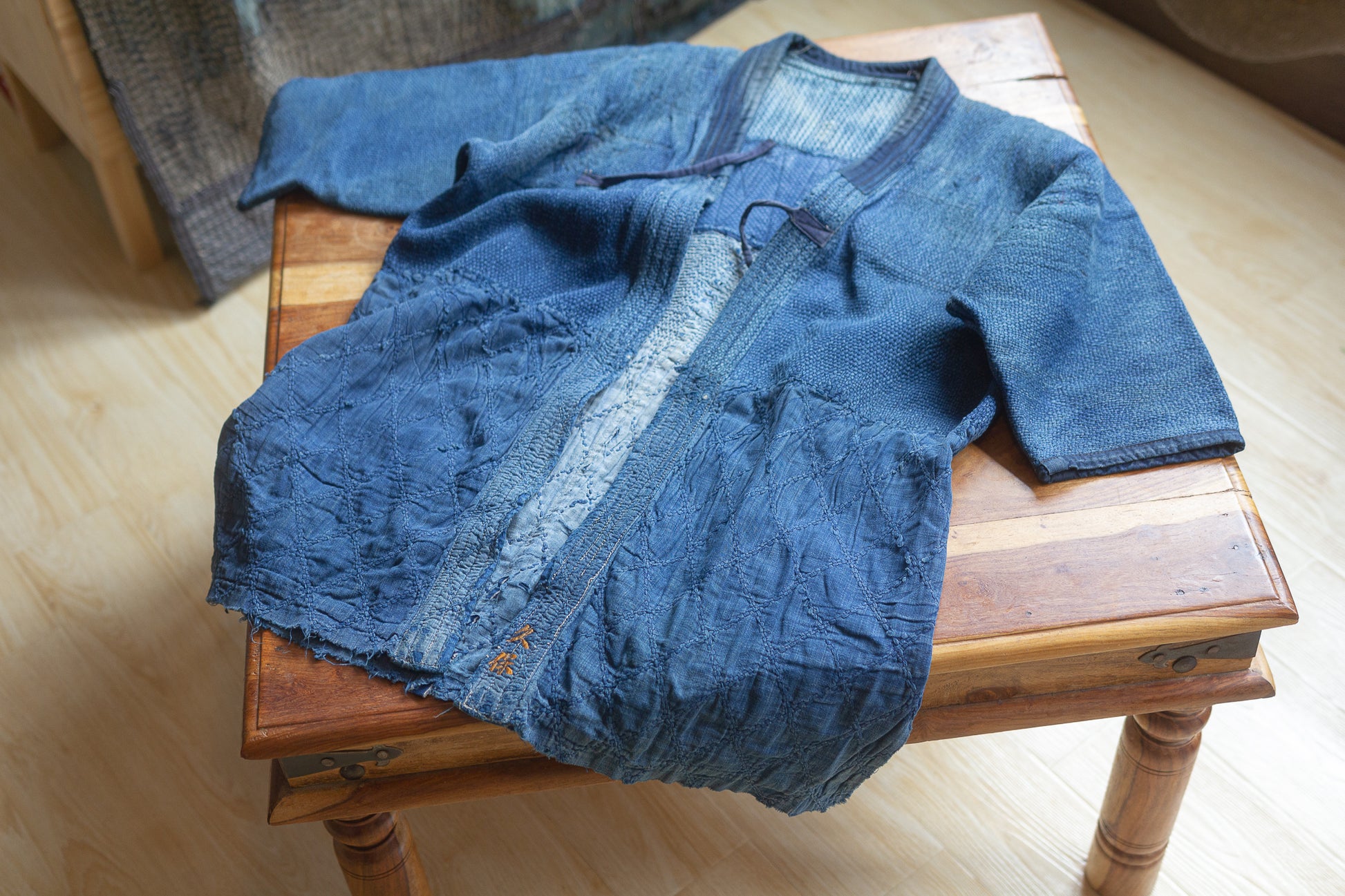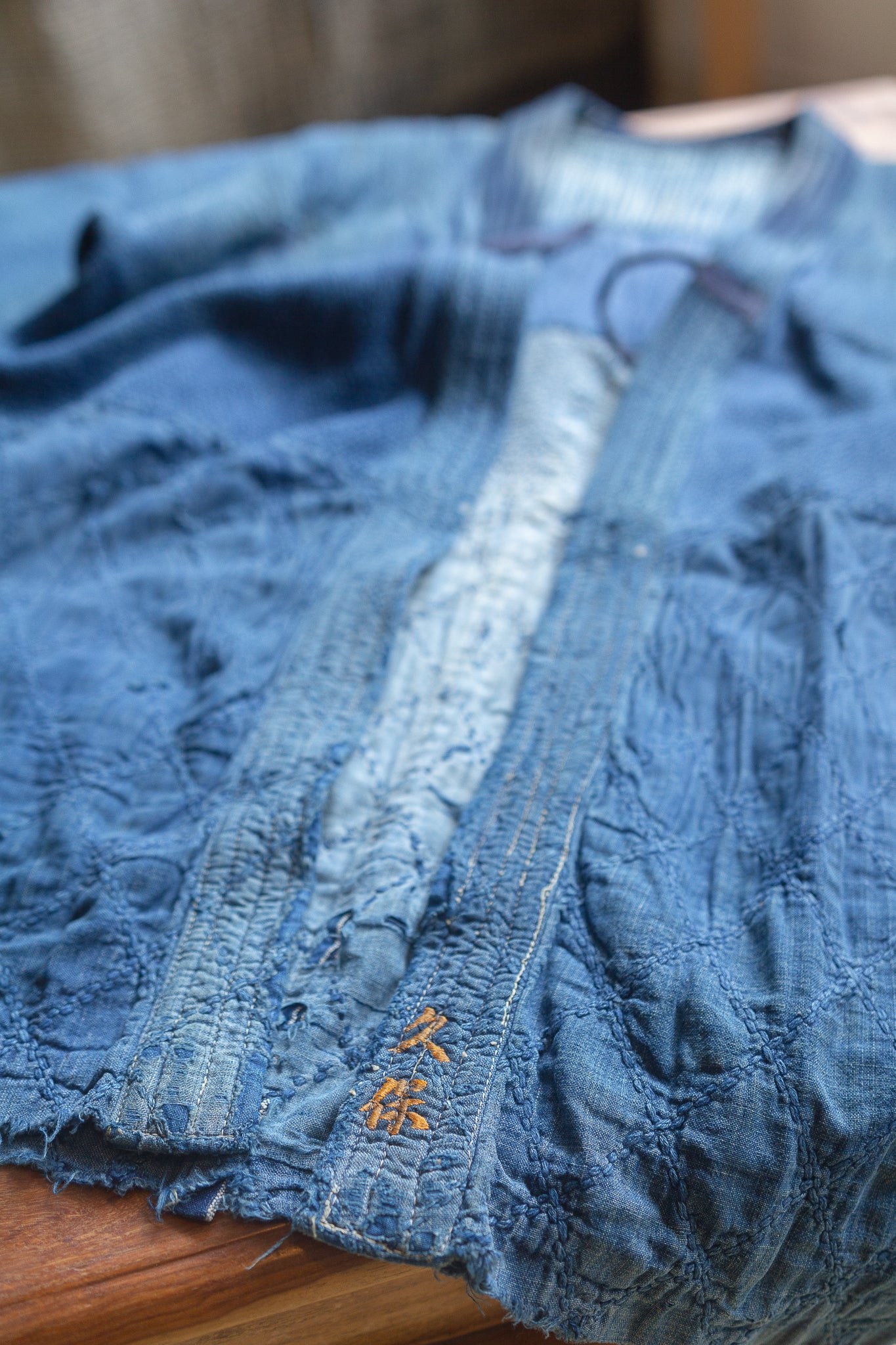 至 大 正 昭 和 年 間 ,藍 染 與 刺 子 織 被 廣 泛 採 用 ,逐 漸 固 定 為 經 典 樣 式 。