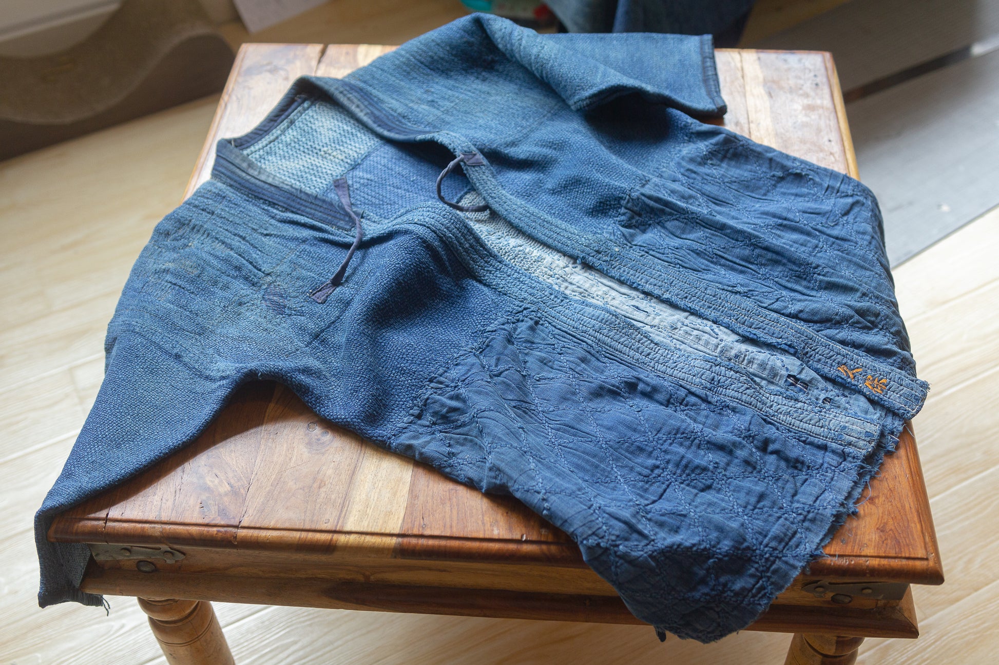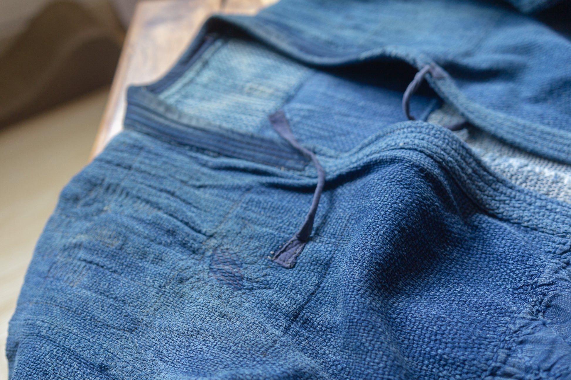 藍 染 布 料 具 防 菌 防 臭 ,經 歲 月 洗 禮 呈 現 層 次 褪 色 。
